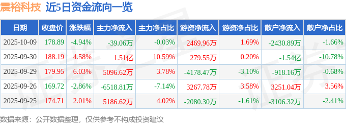 来源:火狐体育官方网站网址下载 发布时间:2025-10-12 18:41:47证券之星音讯,到2025年10月9日收盘,震裕科技(300953)报收于178.89元,跌落4.94%,换手率6.47%,成交量8.08万手,成交额14.64亿元。